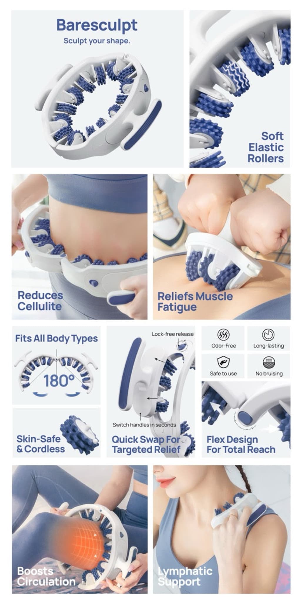 אמצי את הביטחון שמגיע עם עור חלק ומוצק יותר. רולר העיסוי שלנו נגד צלוליטיס משתלב בצורה חלקה בשגרה שלך, ומספק תוצאות נראות לעין בכמה דקות ביום. אל תסתפקי בתיקונים זמניים — חווי שינוי מתמשך והקלה. שדרגי את הטיפוח העצמי שלך והרגישי מחודשת מכף רגל ועד ראש.